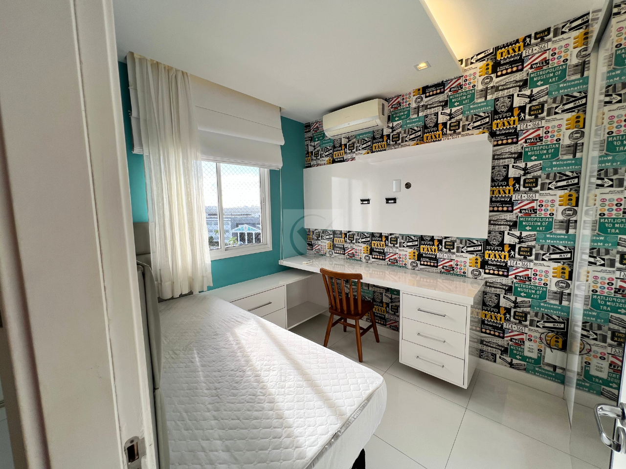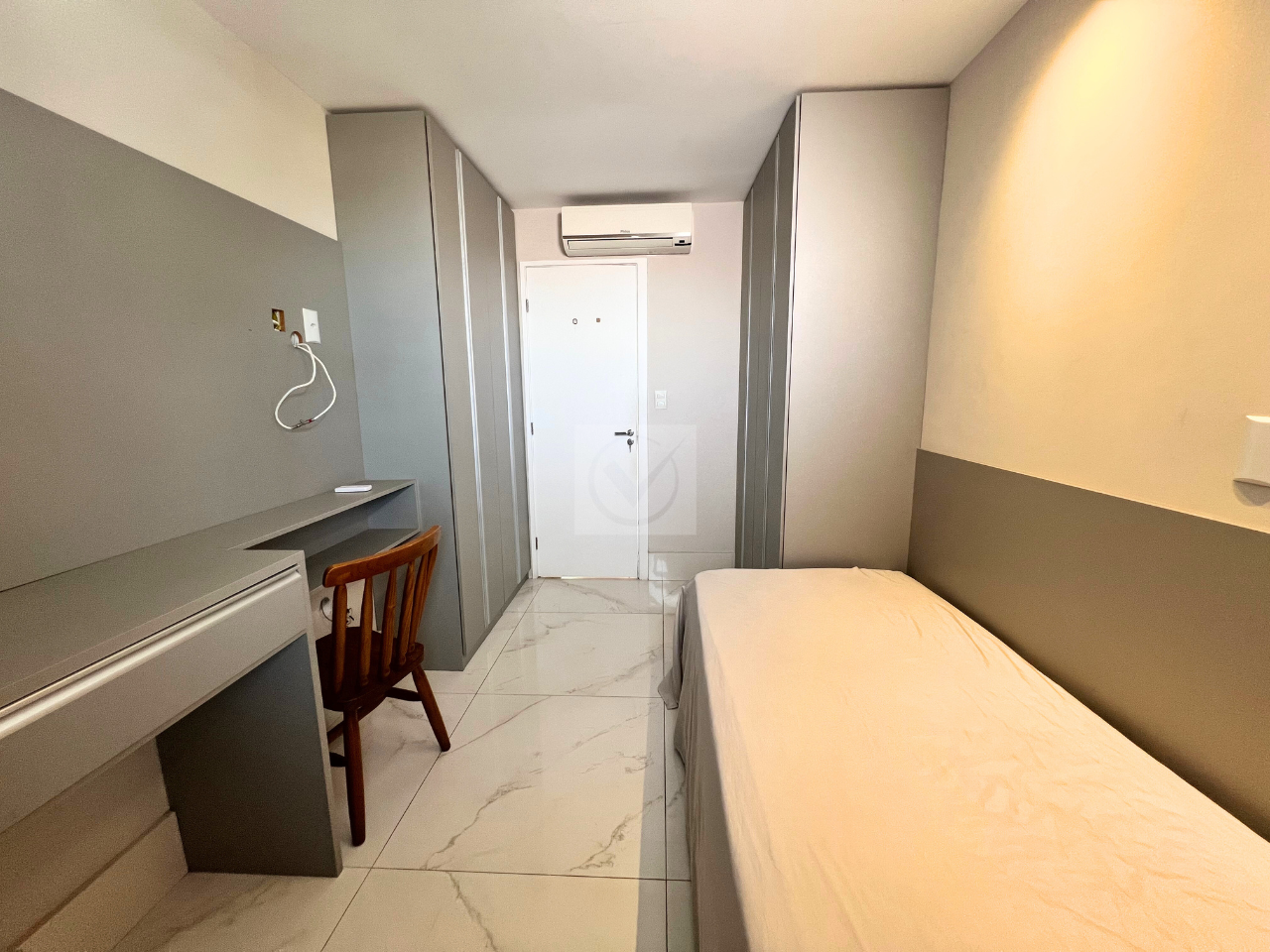 Apartamento 3 quartos (1 suíte), 1 vaga, área interna de 80 m², com armários, ar-condicionado e água individual.