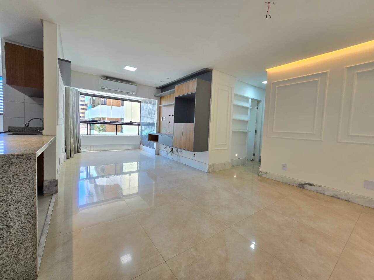 Essa excelente opção de 100m² conta com 02 quartos com armários, sendo uma suíte com 02 closets, Sala de jantar e Sala de estar integradas com ar condicionado central. Cozinha com móveis planejados, Dependência completa, Varanda e 02 vagas de garagem.