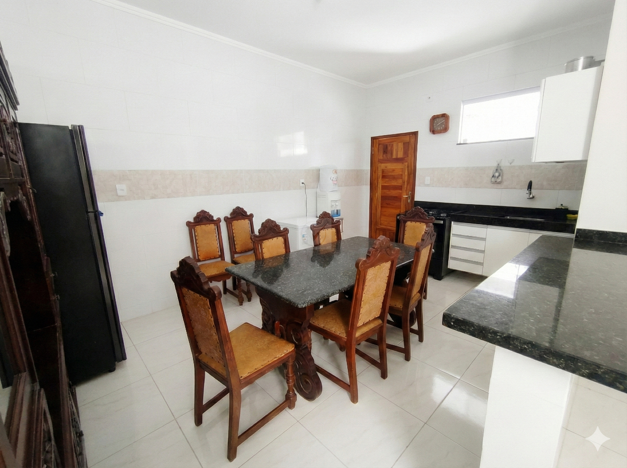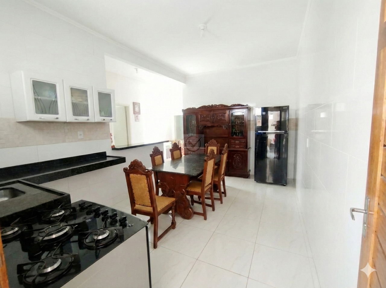 Área Social Integrada: A sala oferece o ambiente ideal para reunir a família, conectada a uma cozinha prática e funcional, facilitando o dia a dia.