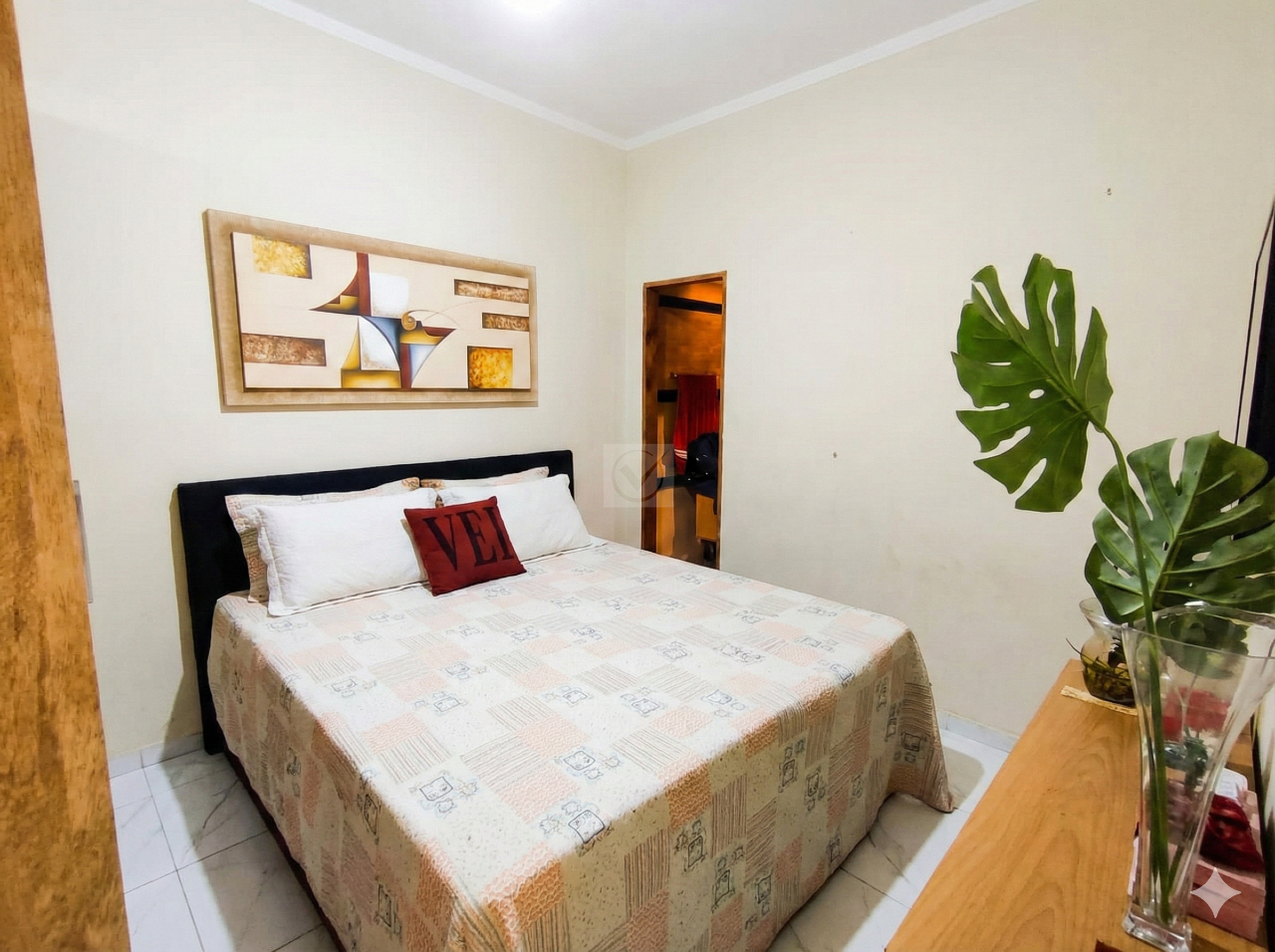 Privacidade e Espaço: O imóvel dispõe de 3 quartos, sendo 1 suíte confortável, além de 1 banheiro social estrategicamente posicionado para atender aos outros quartos e visitas.