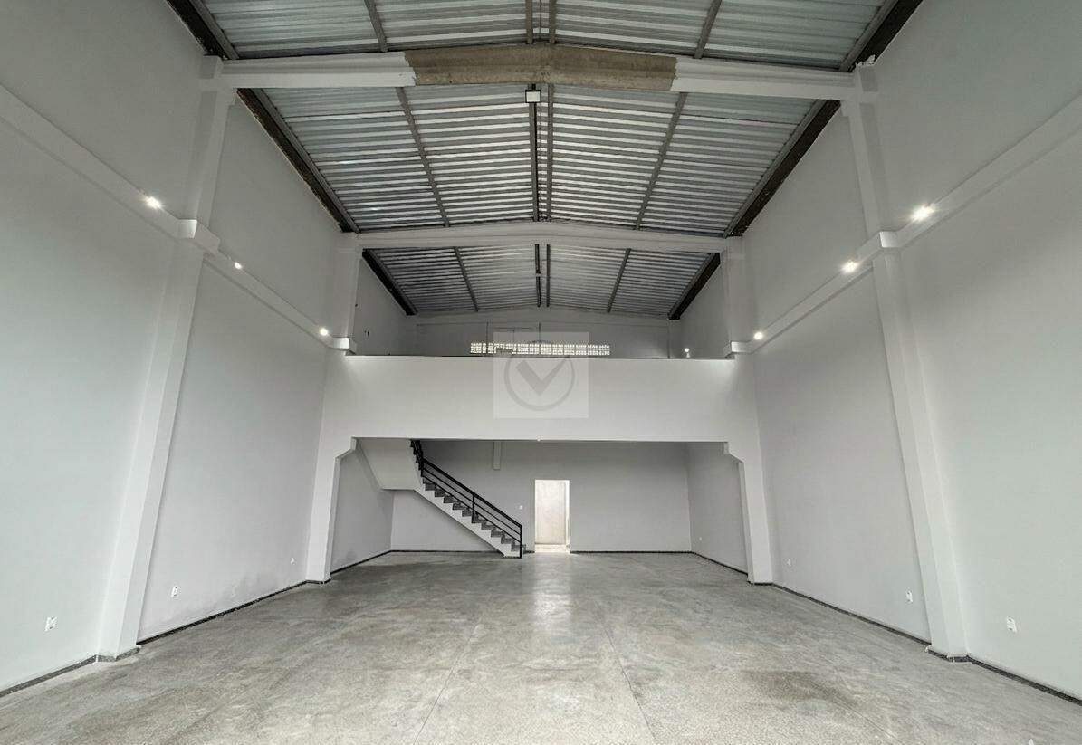 Espaço: Salão amplo com mezanino, oferecendo versatilidade para layout de loja ou estoque.