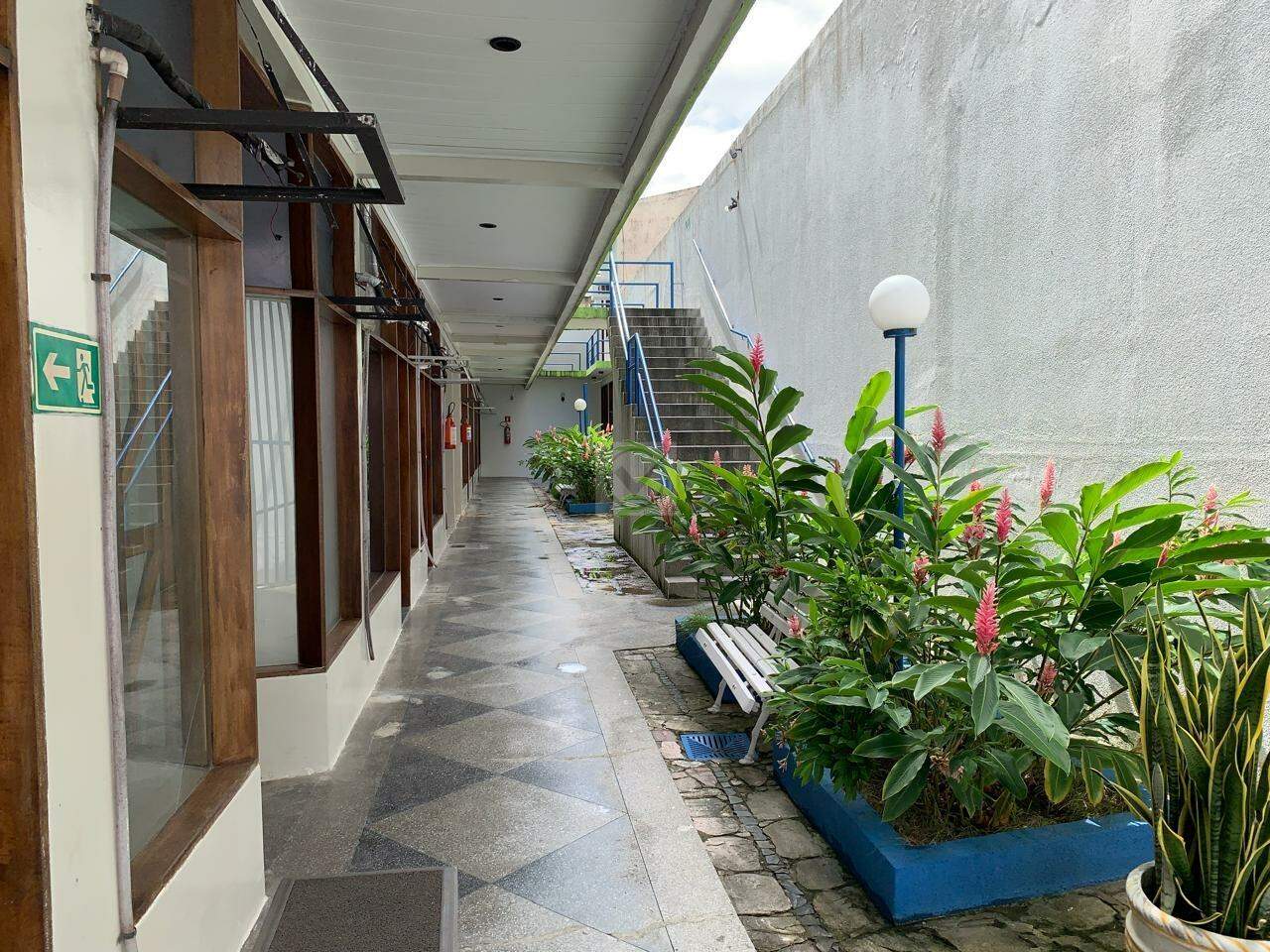 • Hall com plantas e muito verde.